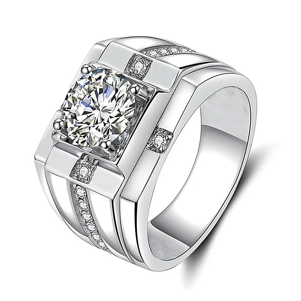 Men's Zircon Diamond Gemstone Ring Rose Silver Jewelry