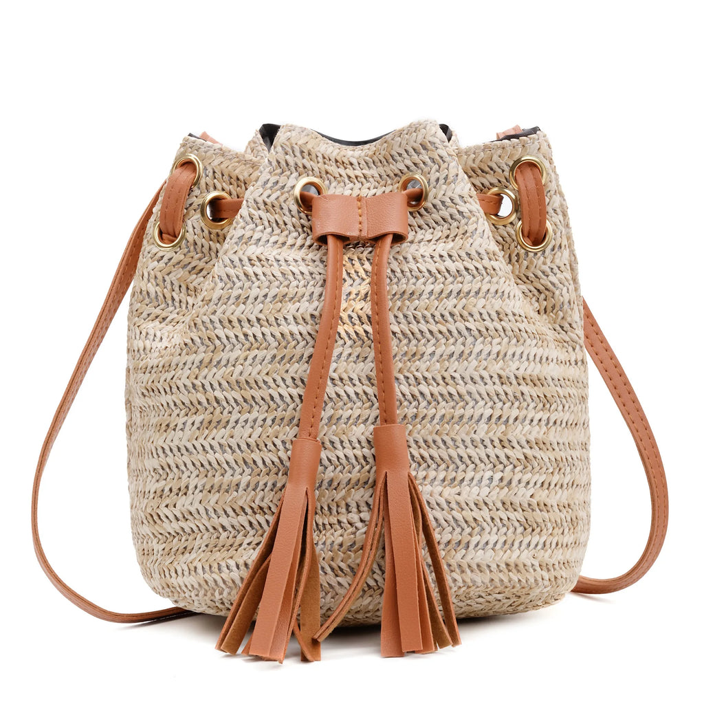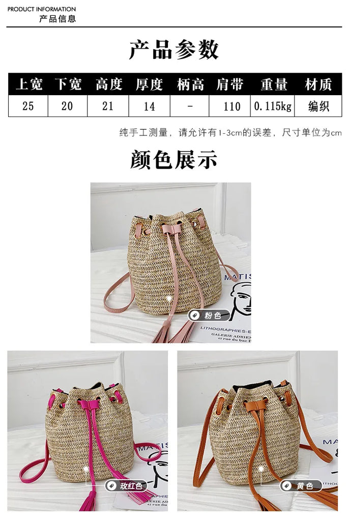 One-Shoulder Straw Bag Tassel Bucket Bag Messenger Female Bag