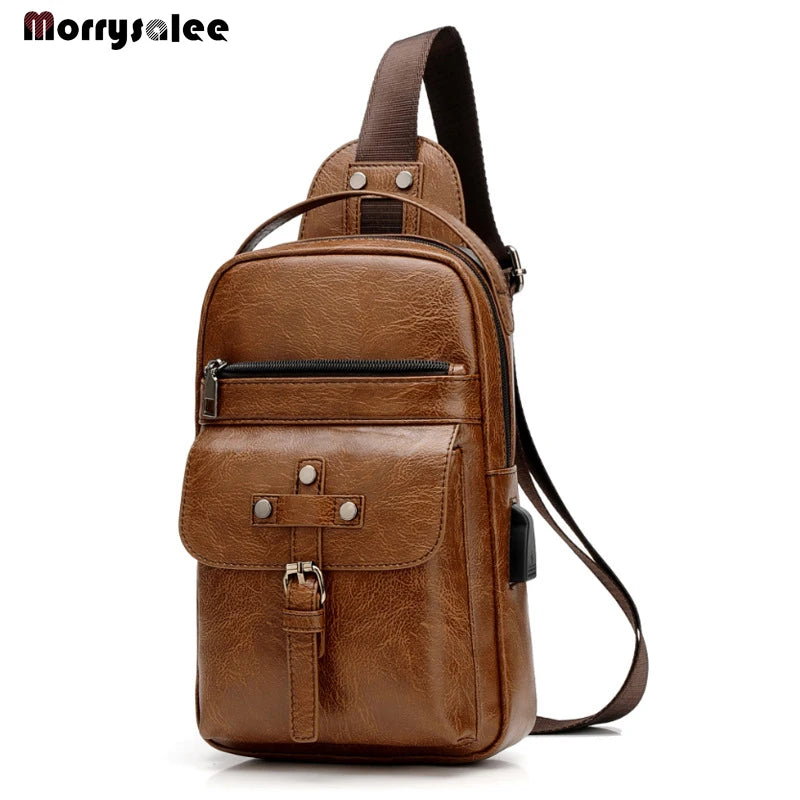 This crossbody bag is made of high-quality PU leather, perfect for men to use in everyday casual situations. It features a USB charging port for convenience.