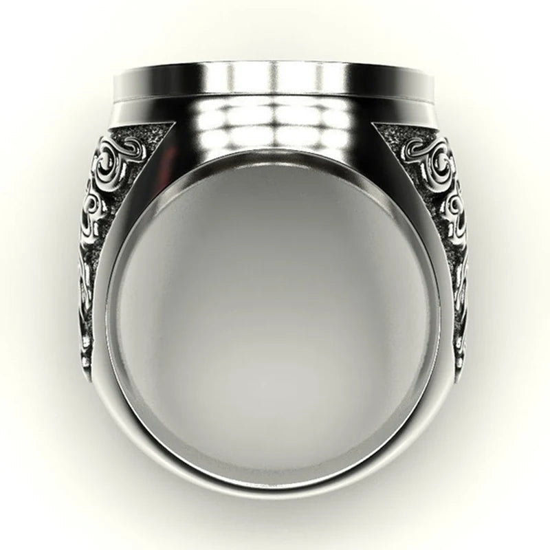 This punk men's finger ring features a unique design with dual metal Rome soldier and dragon elements. It's a bold statement piece of bague homme jewelry.