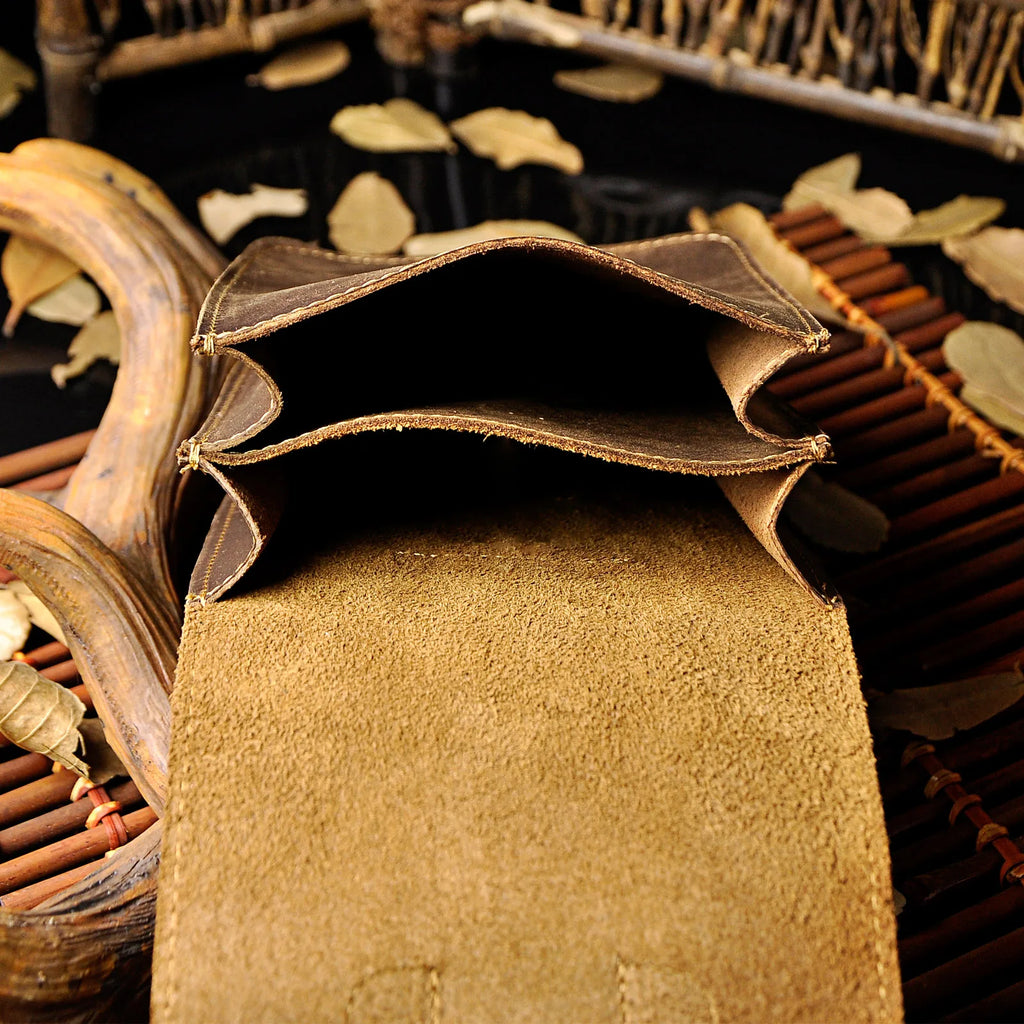 Genuine cow leather waist pouch perfect for carrying essentials like phone and cigarettes while on the go.