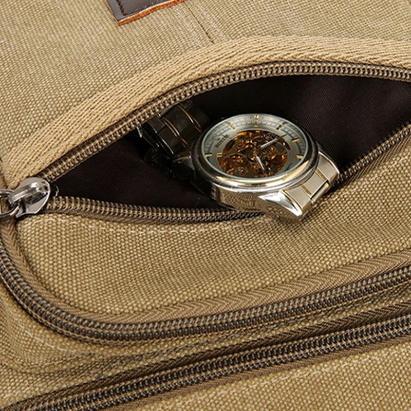 Stay stylish on-the-go with this retro travel men's shoulder bag made of durable canvas material. The flip design adds a classic touch, while the zippered compartments provide multifunctional storage.