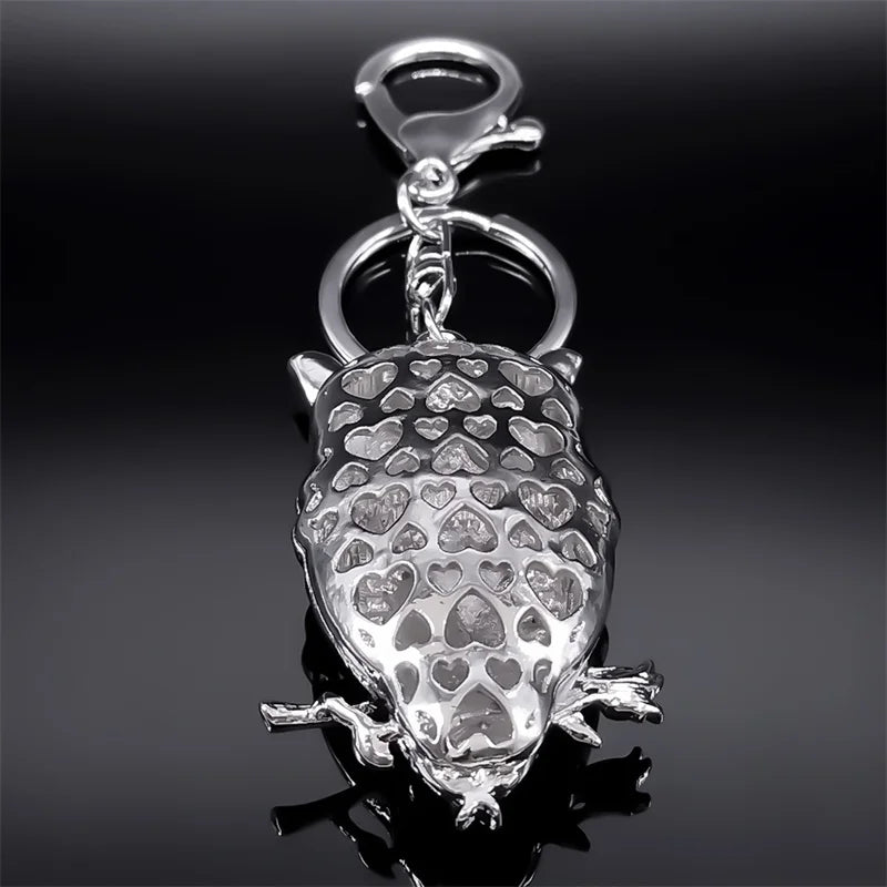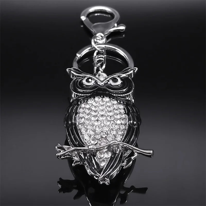 Rhinestone Owl Keychain Silver Animal Key Ring Jewelry Gift