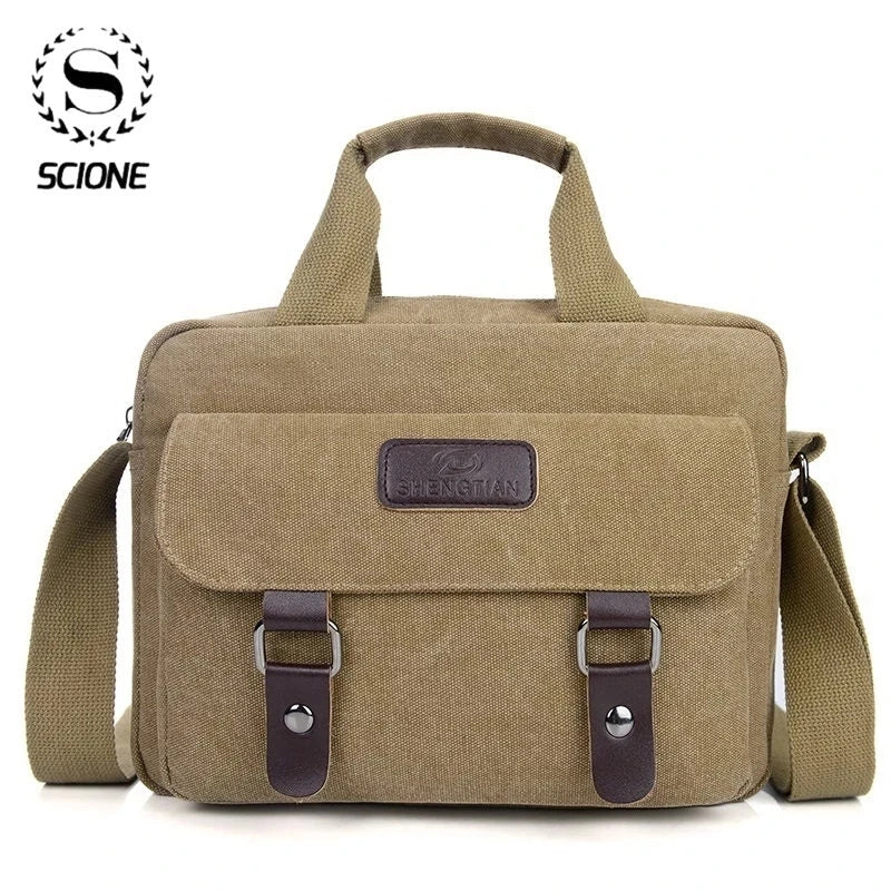 Scione Men's Canvas Briefcase Bag Retro Shoulder Multifunctional Messenger Bag