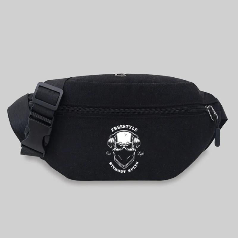 This stylish chest bag features a skull printing design, perfect for organizing your essentials. Made of durable canvas material, it can be worn as a crossbody or waist bag for sports or everyday use.