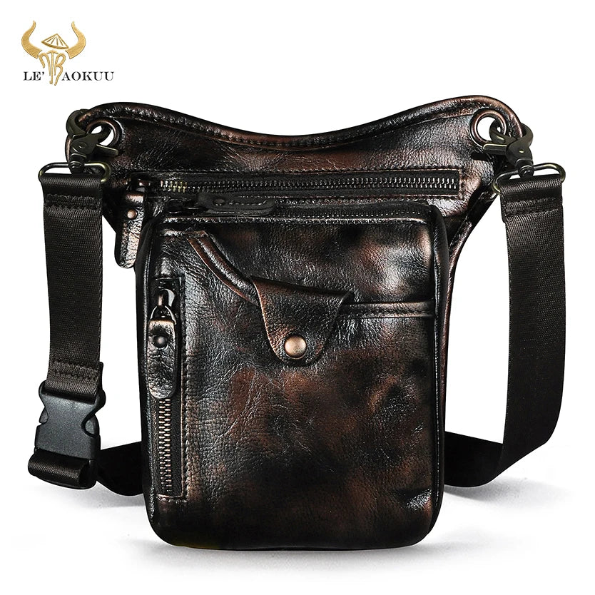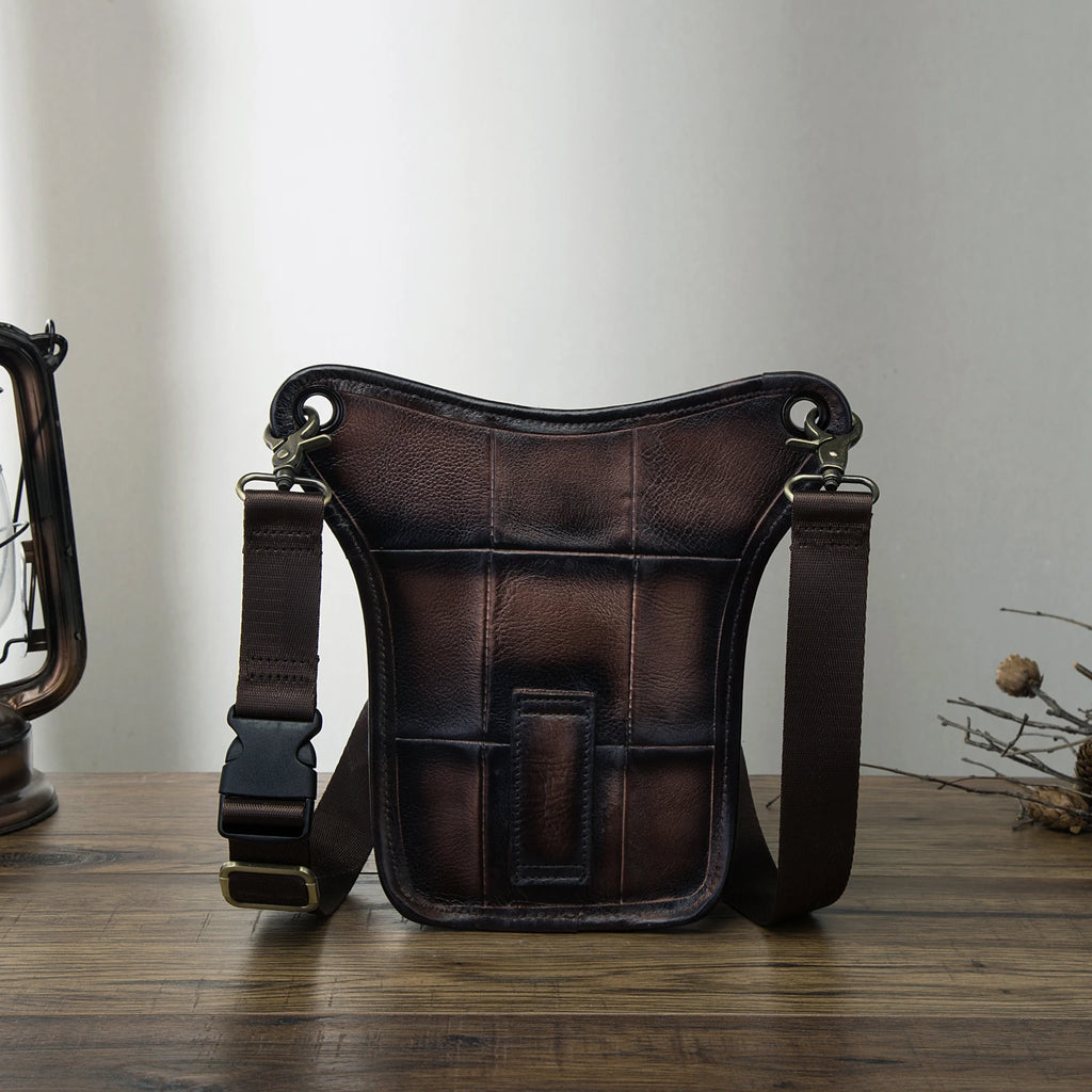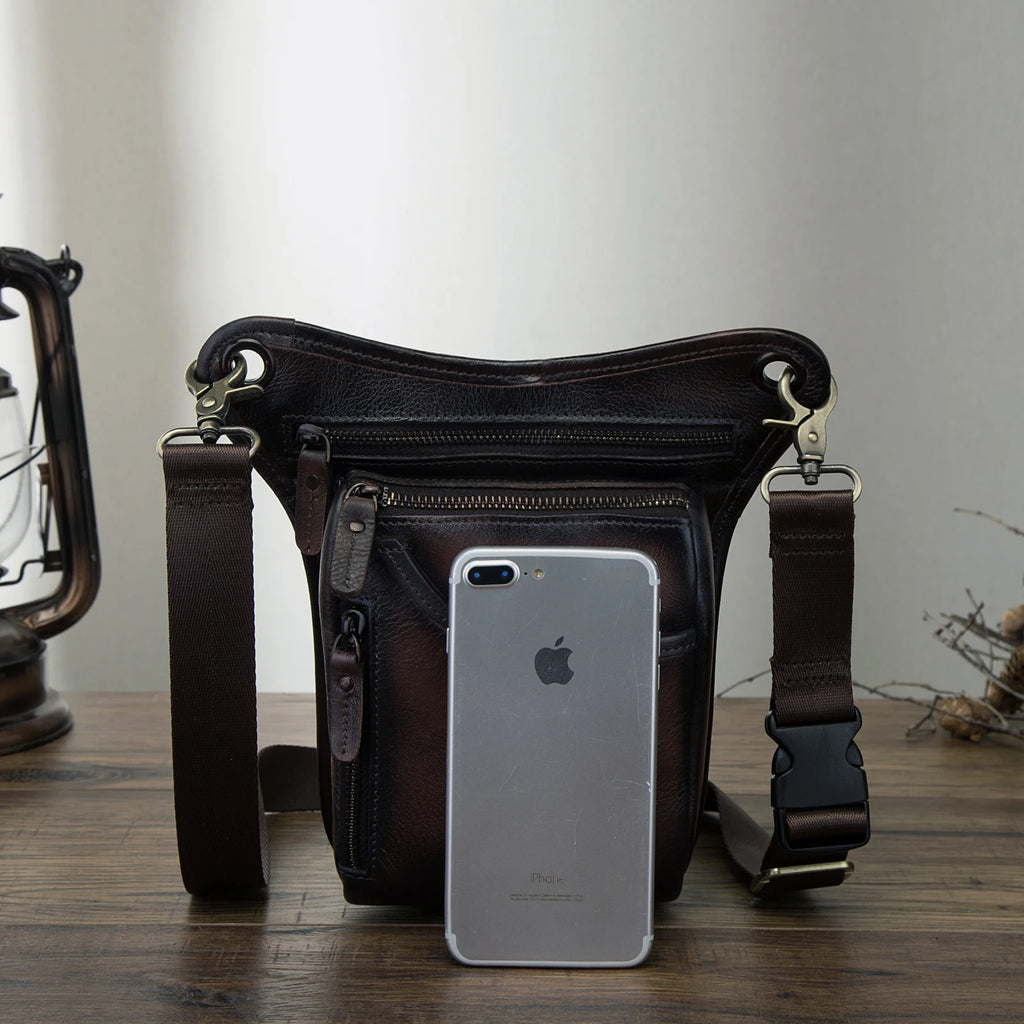 Soft Leather Men Crossbody Sling Bag Fanny Waist Belt Pack Leg Drop Bag