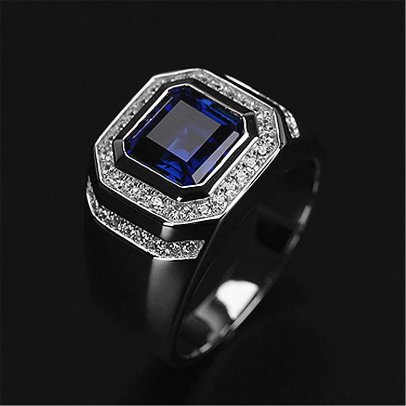 Square Crystal Sapphire Diamonds Ring Men Silver Bague Jewelry