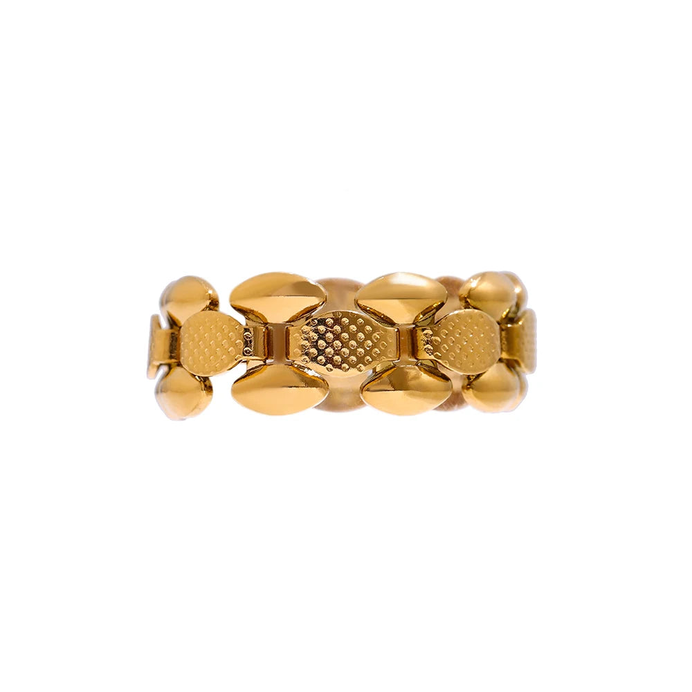 Elevate your style with this statement stainless steel chain ring featuring a golden charm. Perfect as a gift or addition to your accessories collection.
