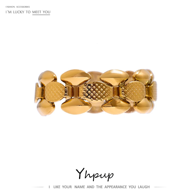 Description:Elevate your style with this statement stainless steel chain ring featuring a golden charm. Perfect as a gift or addition to your accessories collection.Features: High-quality stainless steel construction Unique metal texture design Golden charm adds a touch of elegance Versatile accessory for any outfit Great gift idea for loved ones...
