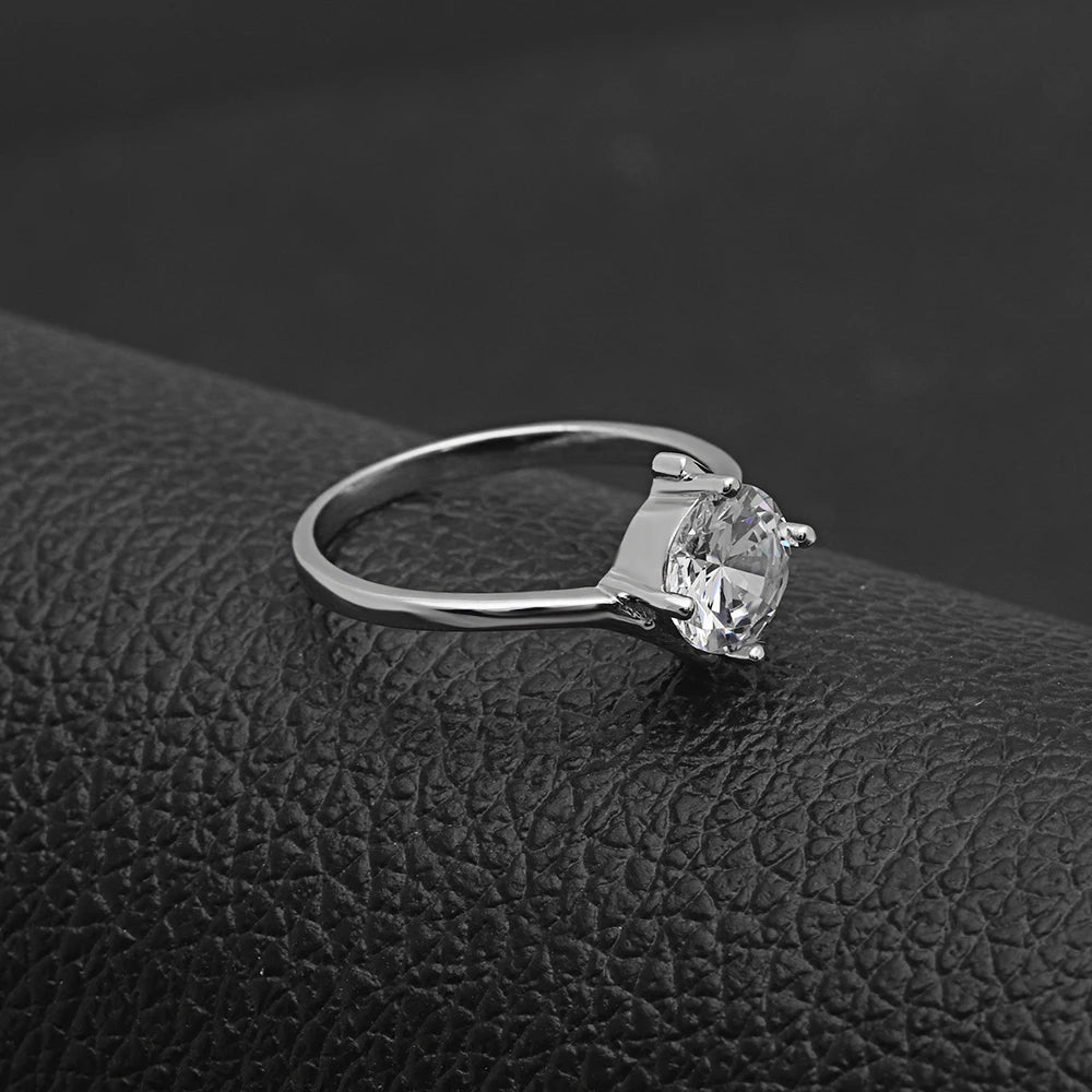 Sterling Silver Ring Clear Zircon Stone Wedding Engagement Gift