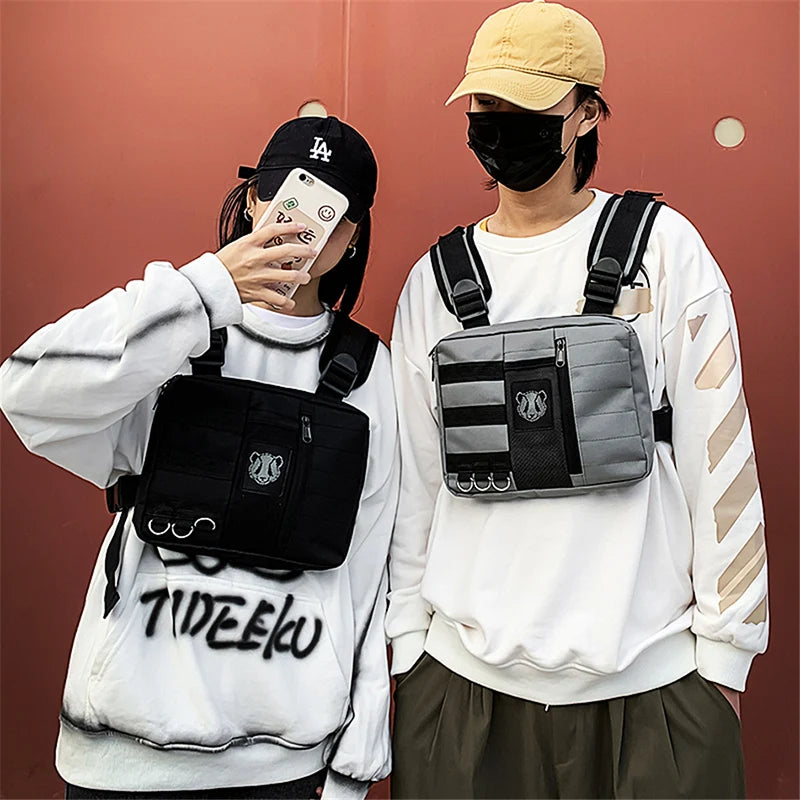 Stay tactical with this versatile Oxford chest bag. Ideal for hip-hop streetwear and multifunctional use.