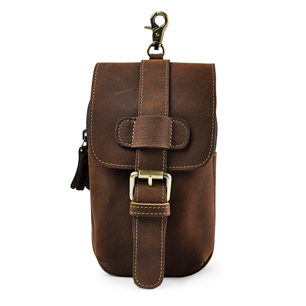 Thick Leather Travel Hook Fanny Waist Belt Pack Bag Phone Pouch