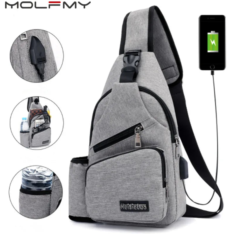 Unisex USB Charge Chest Bag Antitheft Travel Crossbody Sling Shoulder Bag