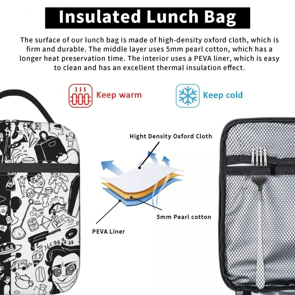 Keep your food fresh and cool with this Unus Annus themed lunch bag featuring the Memento Mori symbol. Perfect for kids and adults on the go.