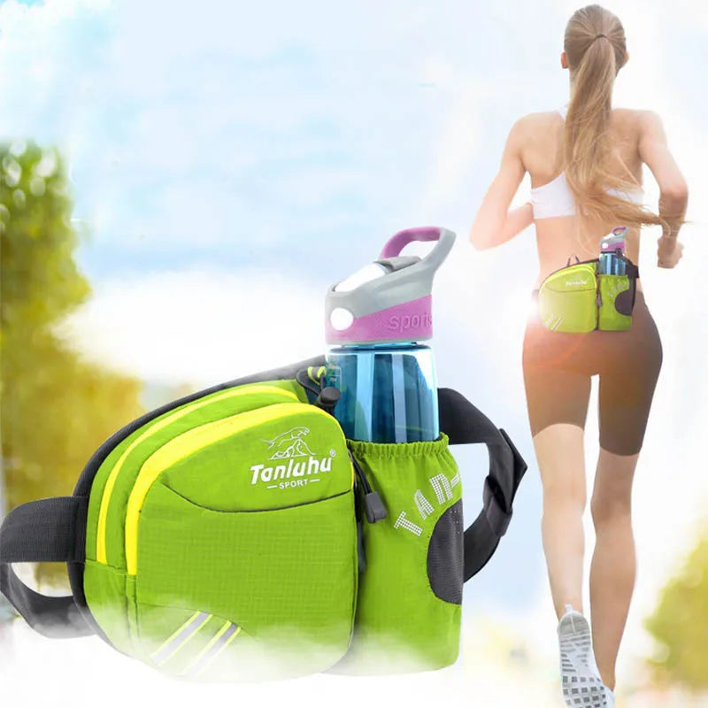 Stay hydrated on the go with this durable nylon waist bag that features a built-in water bottle holder. The reflective design ensures visibility in low light conditions.
