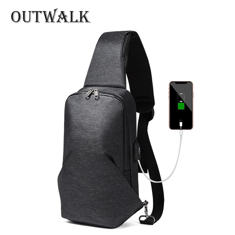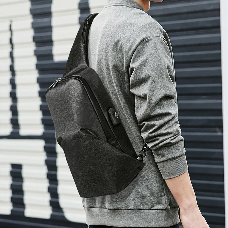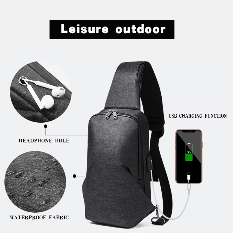 Water Repellent Crossbody Bag for Men, 9.7 inch iPad Chest Bag with USB Charging