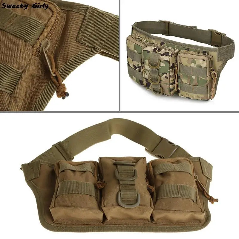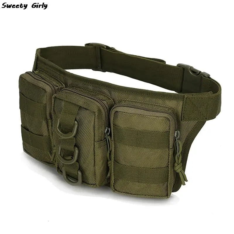 This tactical military waist bag is made of waterproof nylon, perfect for outdoor activities like hiking, camping, and sports.