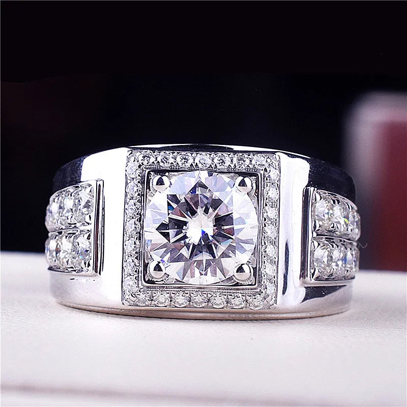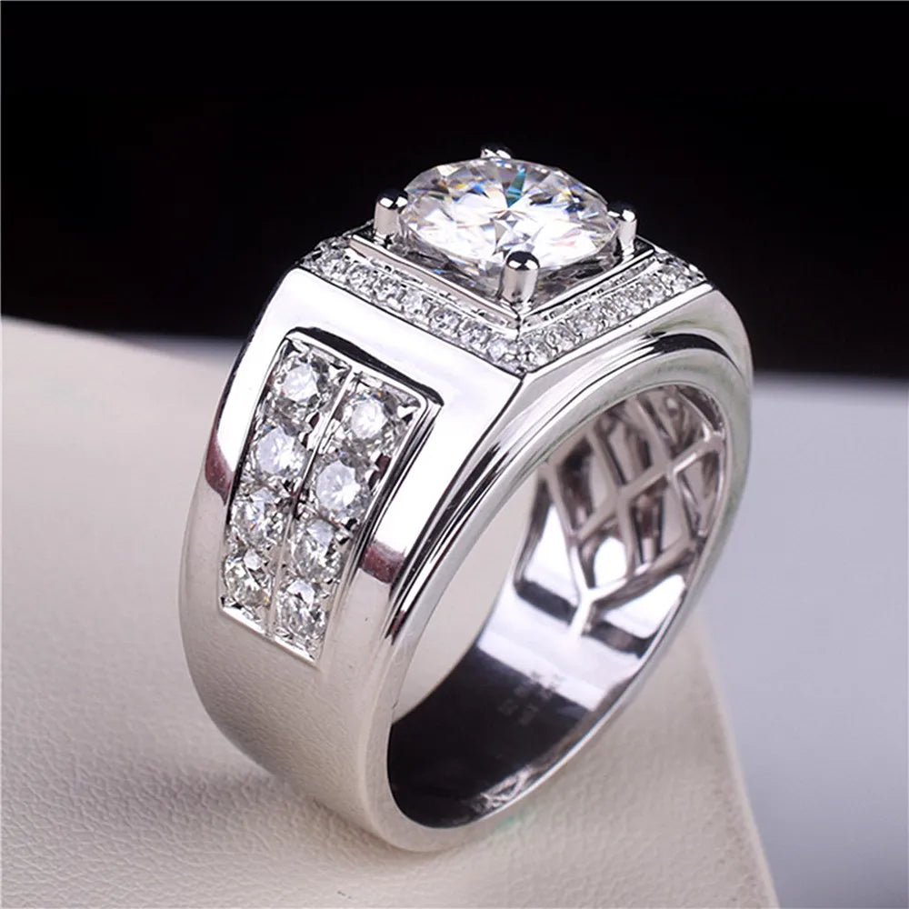This exquisite men's finger ring features zircon diamonds and gemstones, perfect for weddings or business wear.