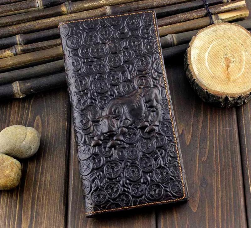 Get yourself this stylish 3D COW print cowhide leather men's wallet for a vintage touch to your accessories. This long wallet offers ample space and a unique design.
