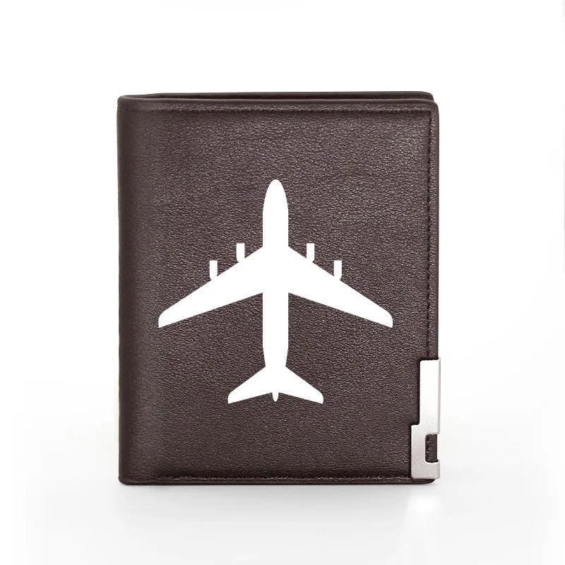 This stylish aircraft design men's wallet is made of durable leather and features a slim design for easy carrying.
