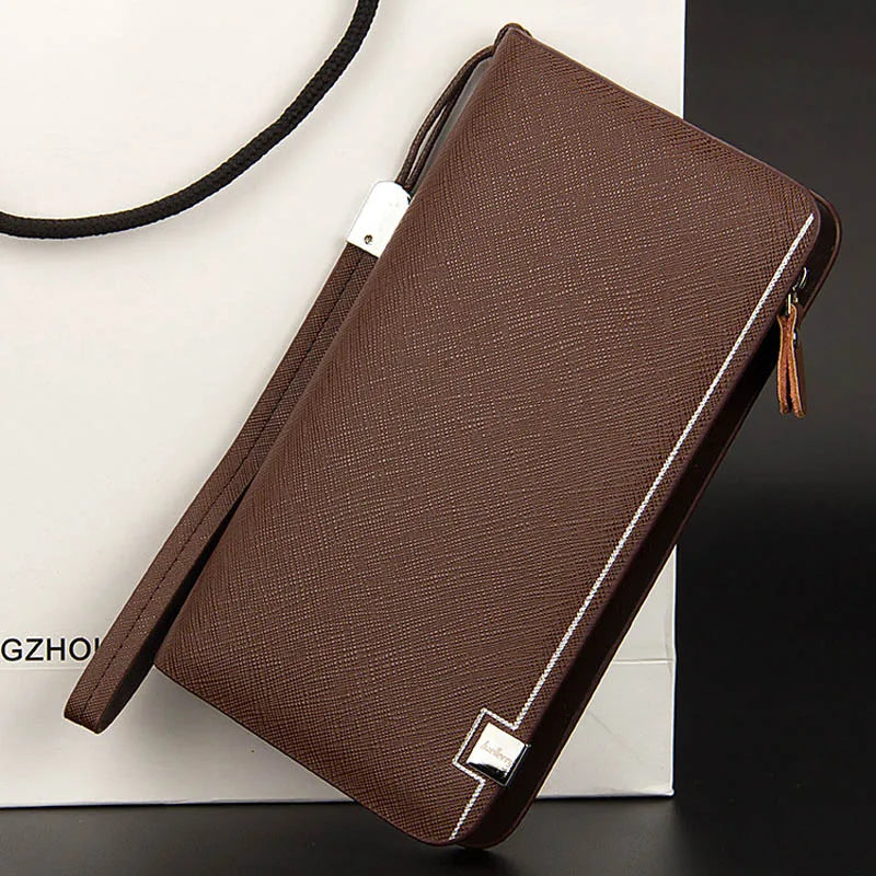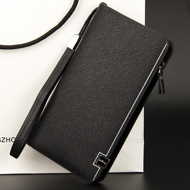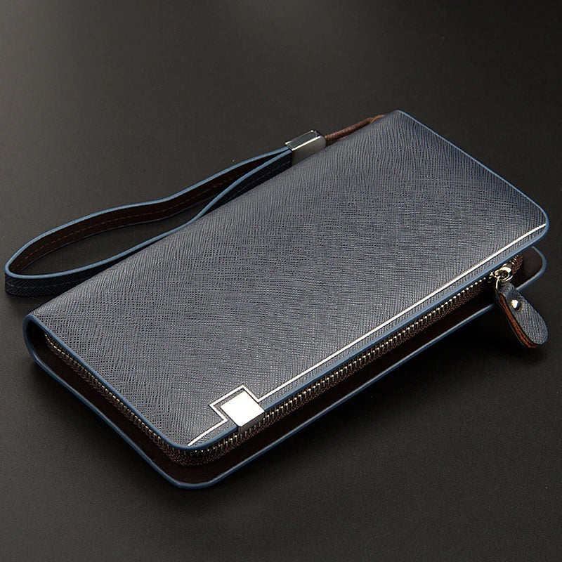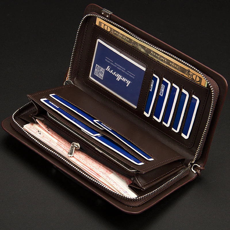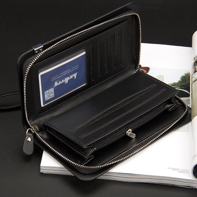 This multi-functional long clutch wallet is designed for men, with a large capacity phone pocket and a zipper closure. It is perfect for business use.