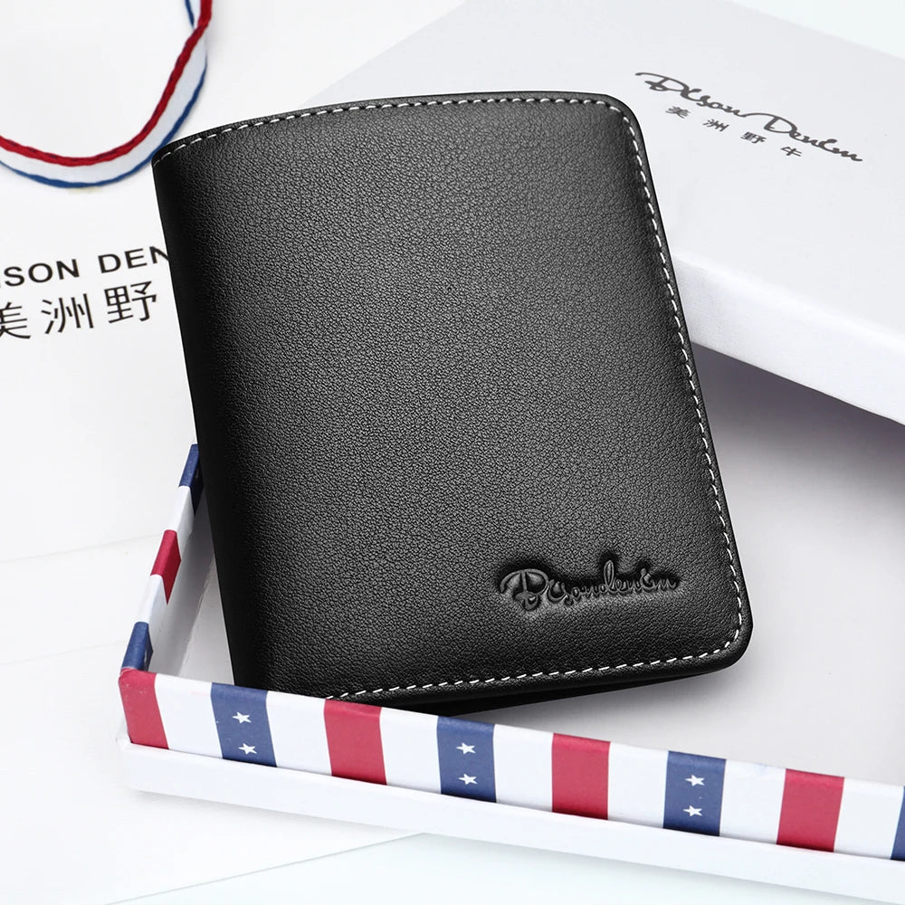 This BISON DENIM wallet is crafted from high-quality leather, featuring a compact size ideal for business and casual use.