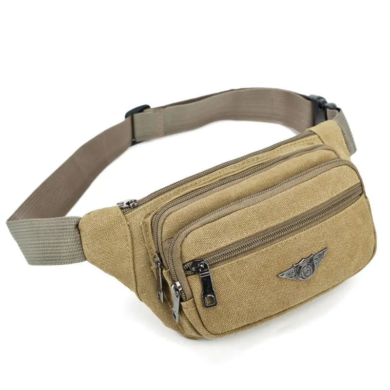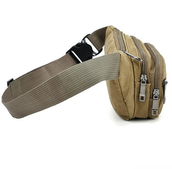 This waist bag is perfect for sports and fitness activities. It has multiple compartments to keep your essentials organized, including a dedicated mobile phone pocket. The canvas material is durable and stylish.