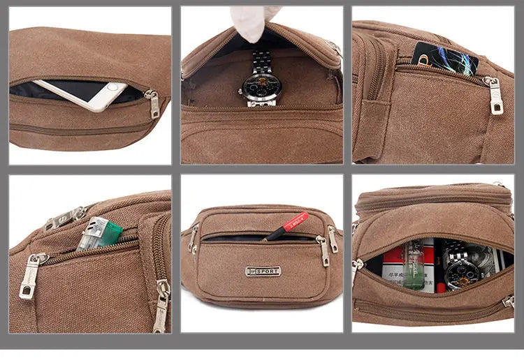 Canvas Waist Bag Men's Multi-Compartment Sports Chest Bag