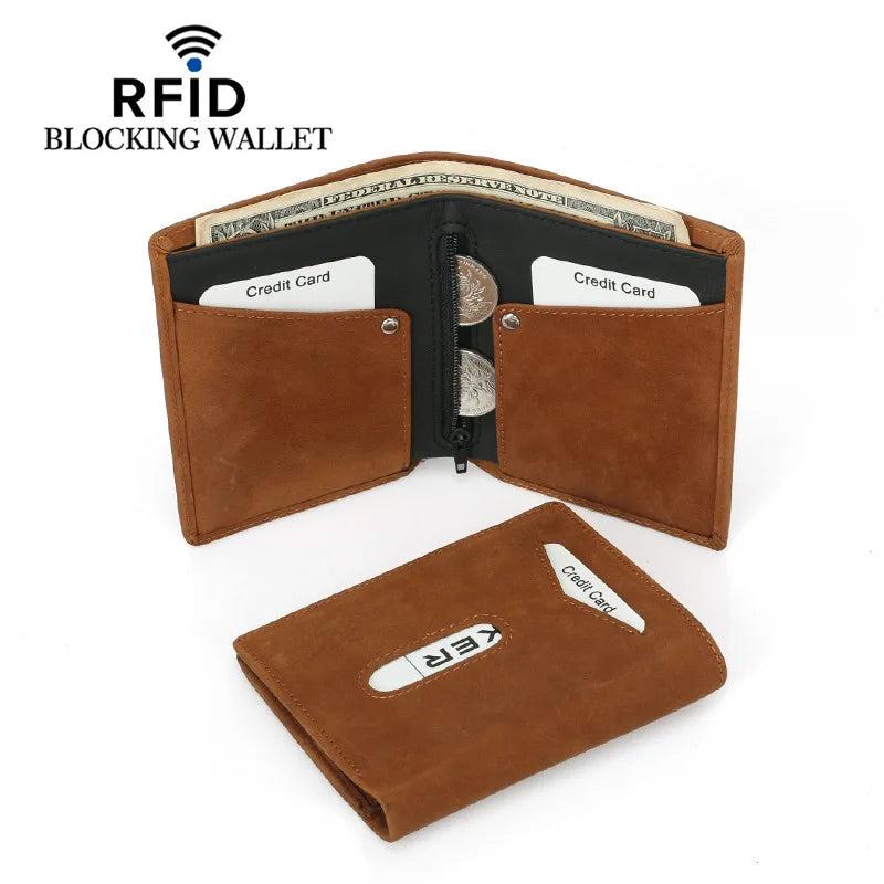 This men's wallet is made of 100% leather, featuring a bifold design and a convenient coin pocket. Perfect for everyday use.