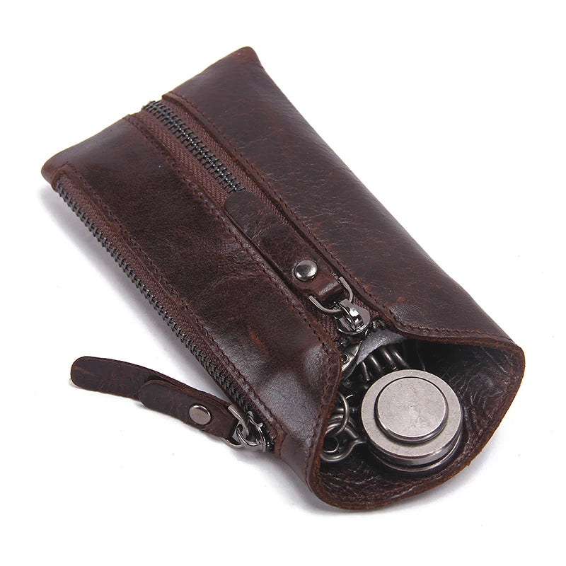 Keep your keys organized and secure with this stylish leather key wallet. Features a zipper closure for added security and a classic vintage design.