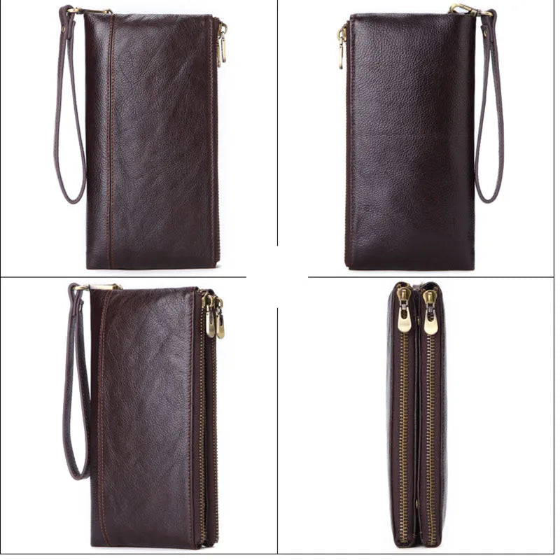 This men clutch wallet is made of high quality cowhide leather with double zipper design. It has a large capacity to hold your essentials and phone, perfect for business use.