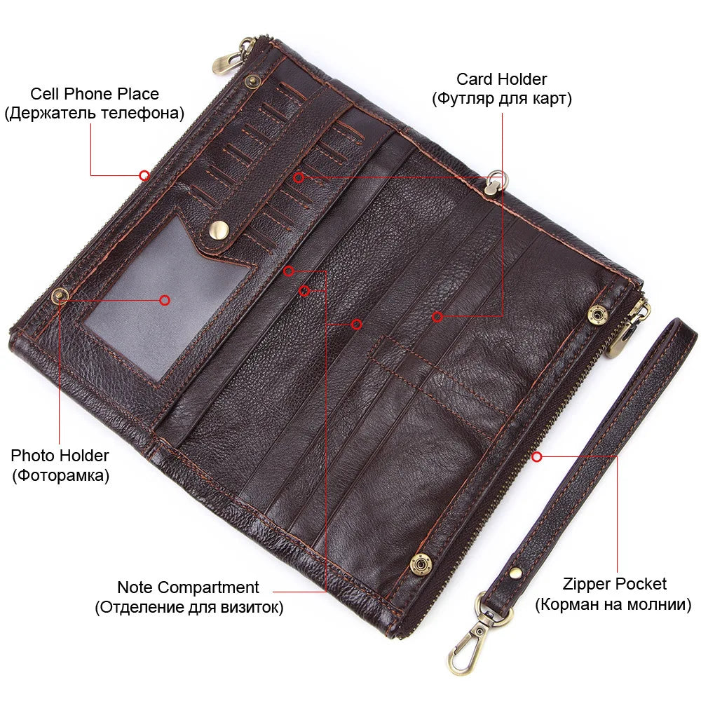 Cowhide Men Clutch Wallets Leather Long Purses Business Large Capacity Wallet