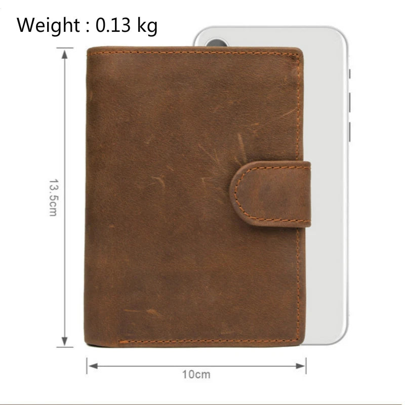 Stay stylish and organized with this first layer cowhide wallet for men. Made of high-quality crazy horse leather, this wallet features multiple card slots and a convenient pocket for your essentials.