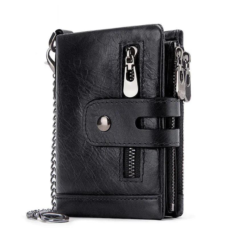 Cowhide RFID Anti-Theft Leather Wallet with Iron Chains