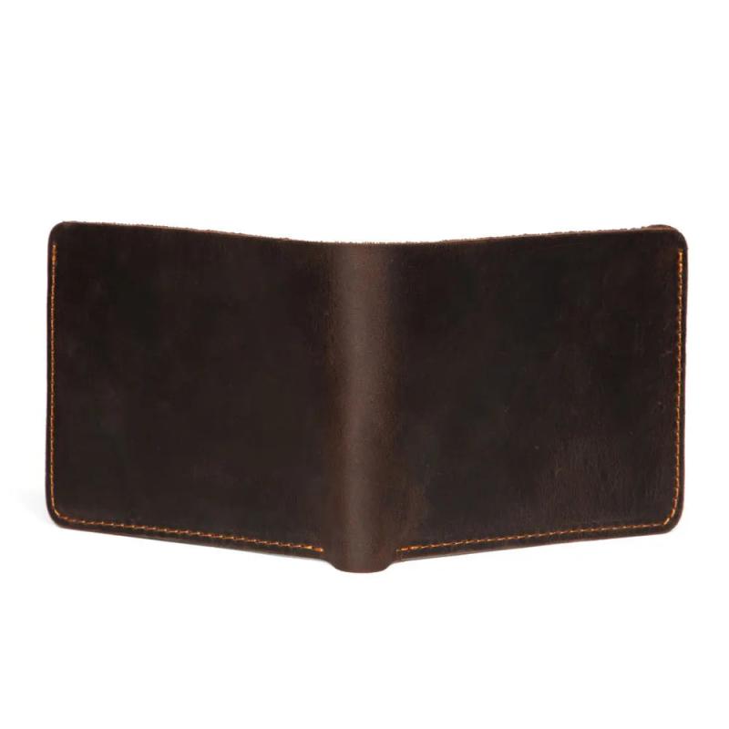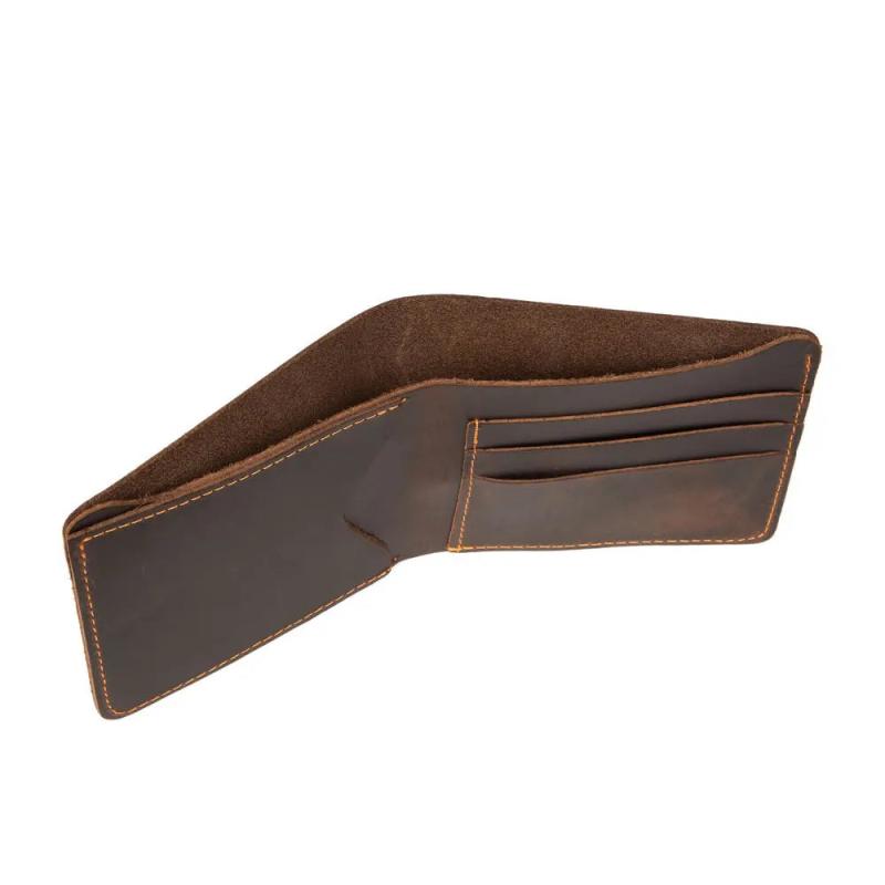 This horizontal wallet is made of high-quality crazy horse leather, providing a retro and European/American style. It features a dollar clip and is crafted from pure cowhide for durability.