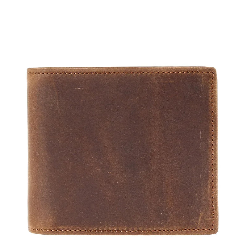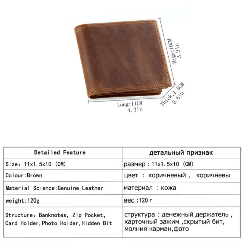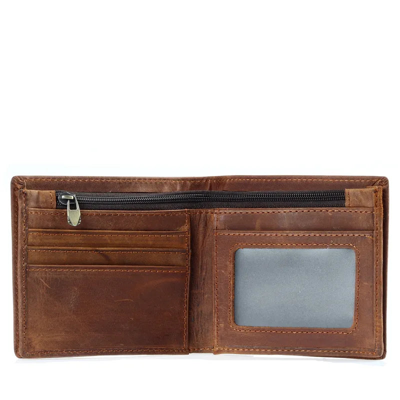 This Crazy Horse leather wallet is perfect for men with its practical zipper design. It's made to last and has a classic bifold style.