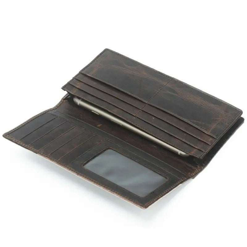 • Long design for holding money, phone, and more