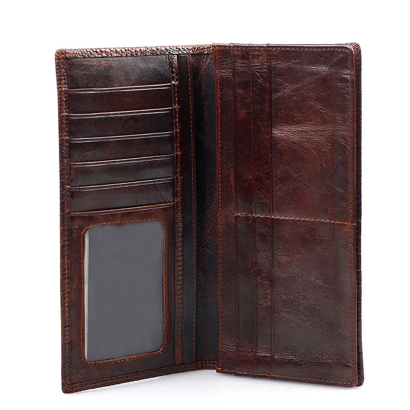 Stay stylish with this 100% leather wallet featuring a crocodile pattern. It has long pockets and is perfect for men.