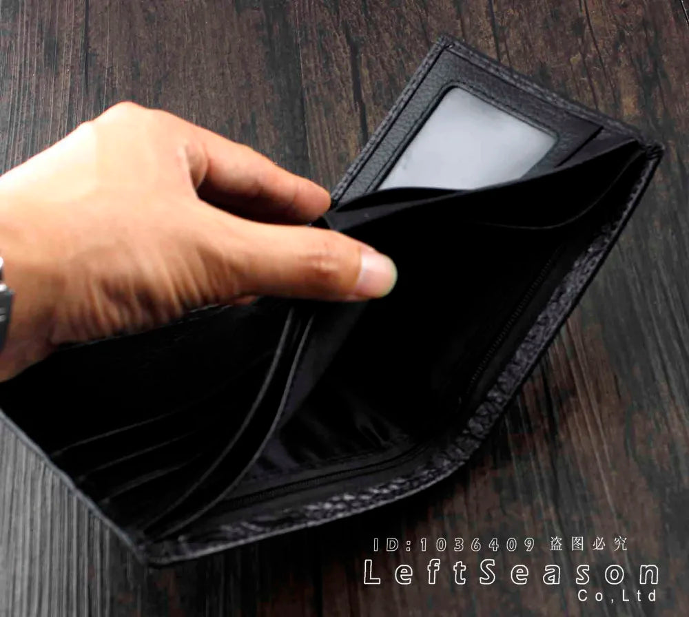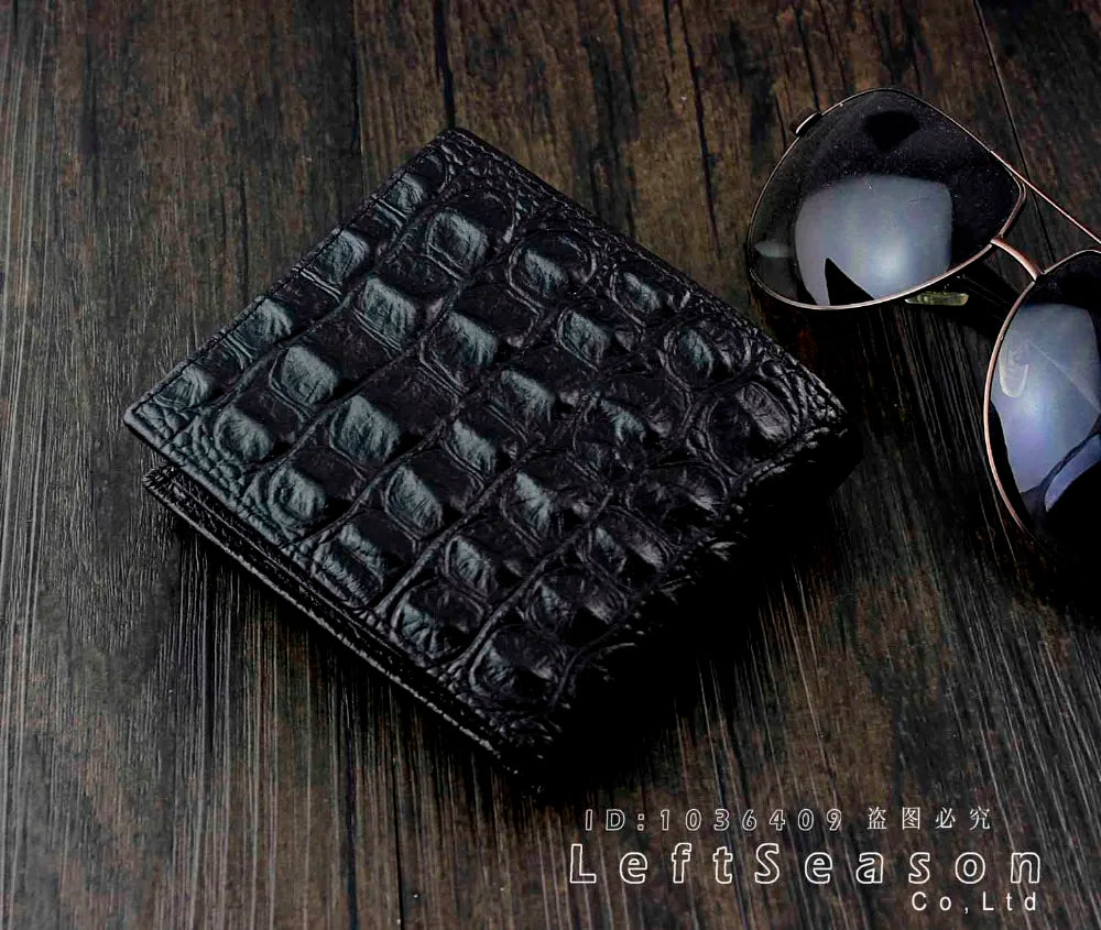 This men's billfold short wallet features a stylish crocodile texture design made of genuine leather.