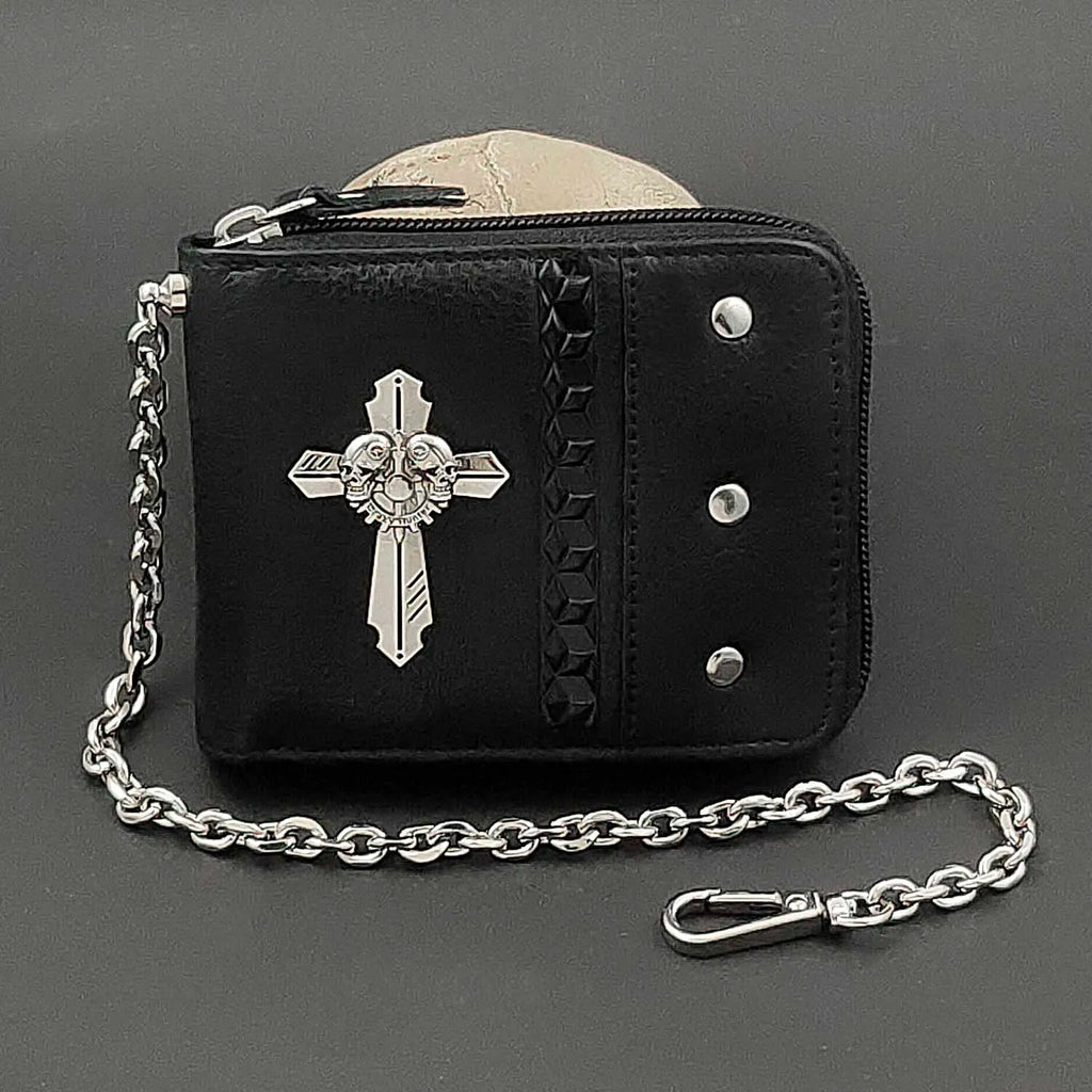 Cross Punk Biker Men's Leather Wallet with Chain