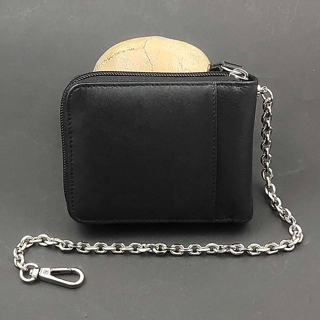 Stay stylish and secure with this biker men's leather wallet featuring a chain for added flair.
