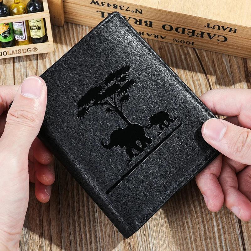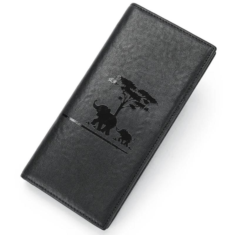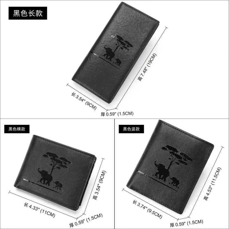 This stylish leather wallet features an elephant imprint design, perfect for business or casual use. It has multiple compartments for cards, cash, and coins.