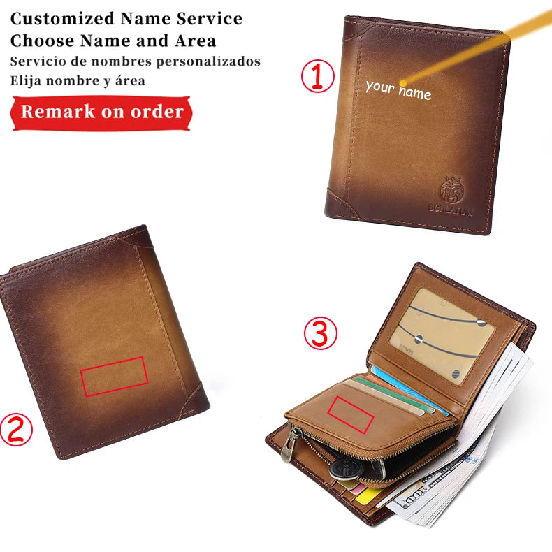 Engraved Name Wallet Men's Leather Short Wallet Personalized Father's Gift