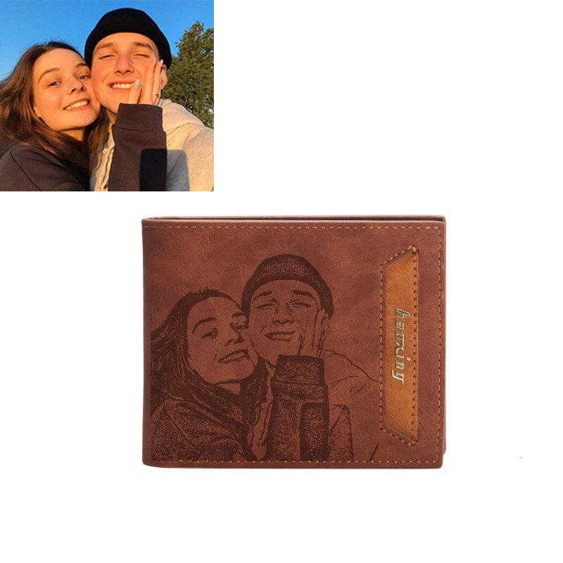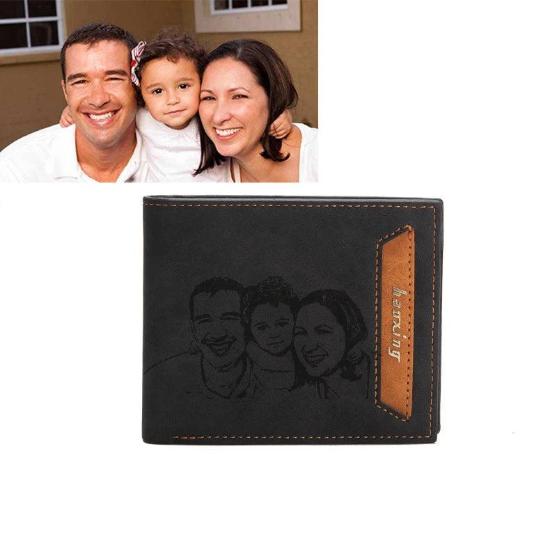 Personalized high quality PU leather wallet designed for men. This wallet features a photo purse and offers a classic retro style.