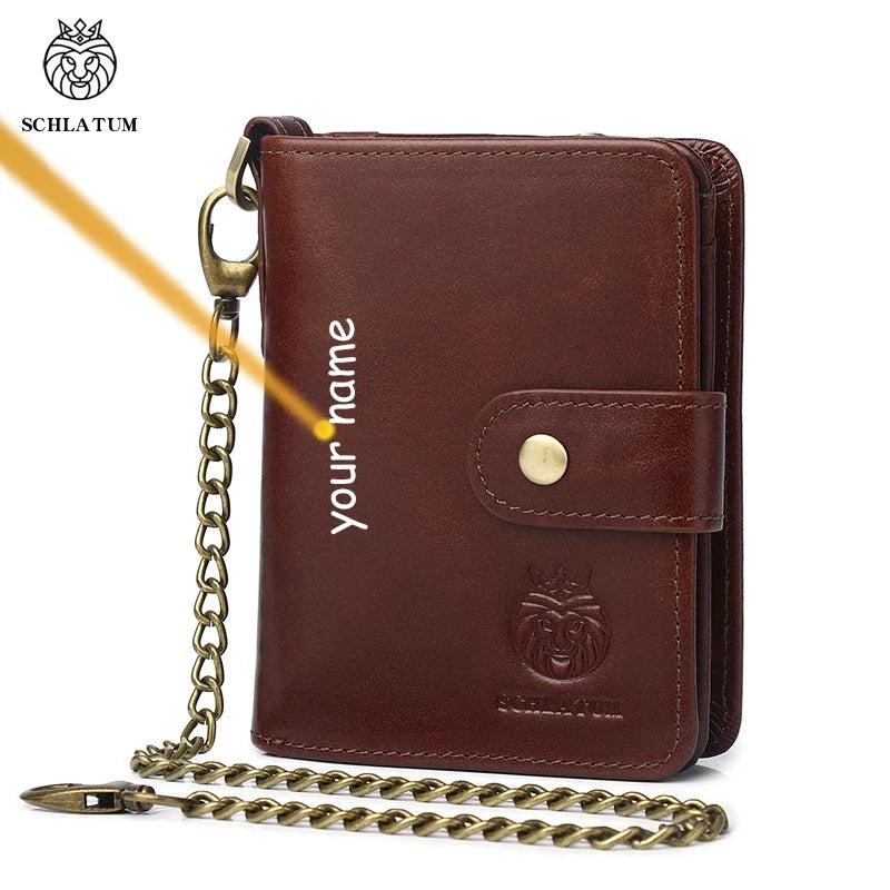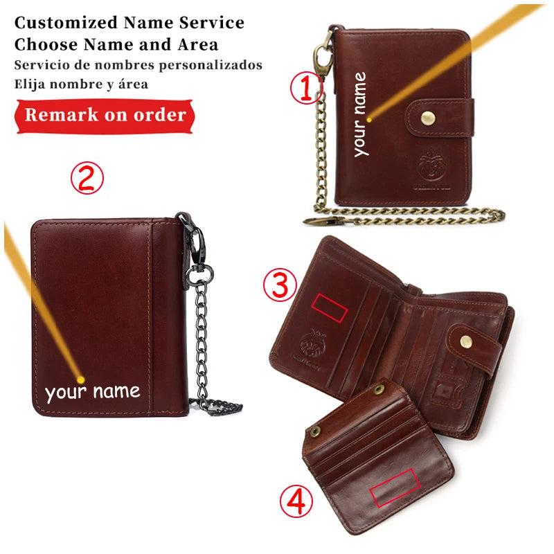 Engraved RFID Short Wallet Men Leather PhotoPurse