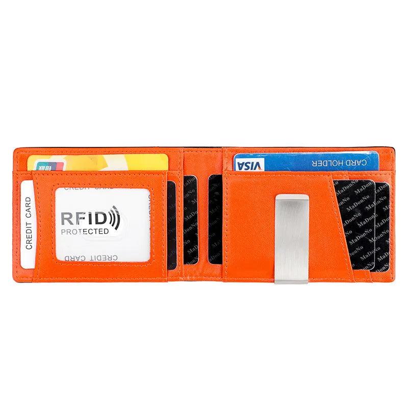 This men's wallet is made of 100% real cowhide leather, offering durability and style. It features multiple compartments to keep your cash, cards, and coins organized.