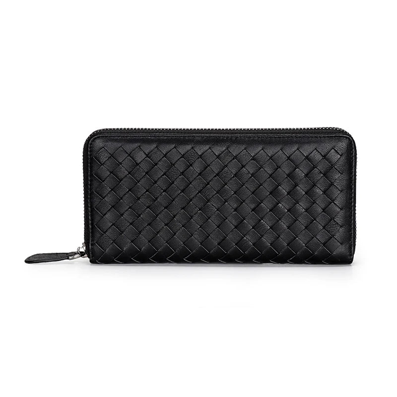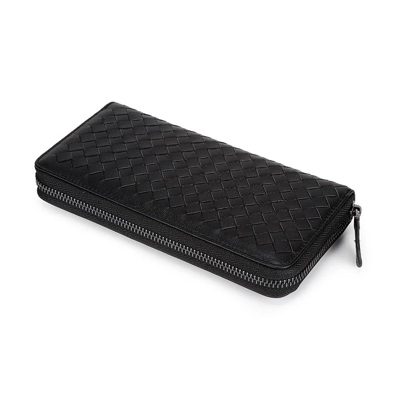 This men's wallet is made with 100% high-quality sheepskin leather in a hand-made knitting style. It features a long design with zipper closure, perfect for keeping your essentials organized.