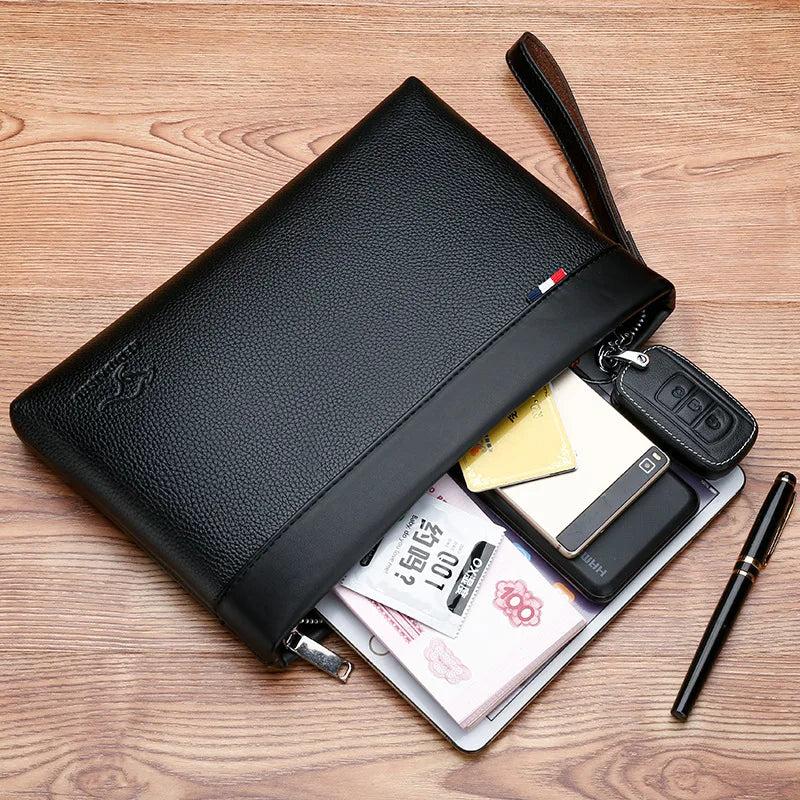 This casual handheld clutch bag is designed for men with a large capacity to hold cards, cash, and other essentials.