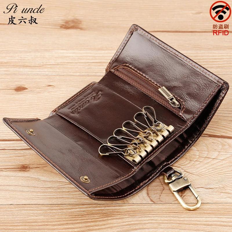 Leather Key Case Men Car Key Holder Zipper Housekeeper Keys Wallet