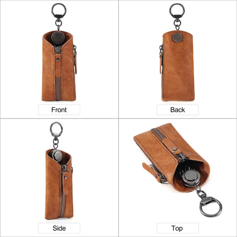 Leather Key Wallet Vintage Men Car Key Holder Zipper Keys Case